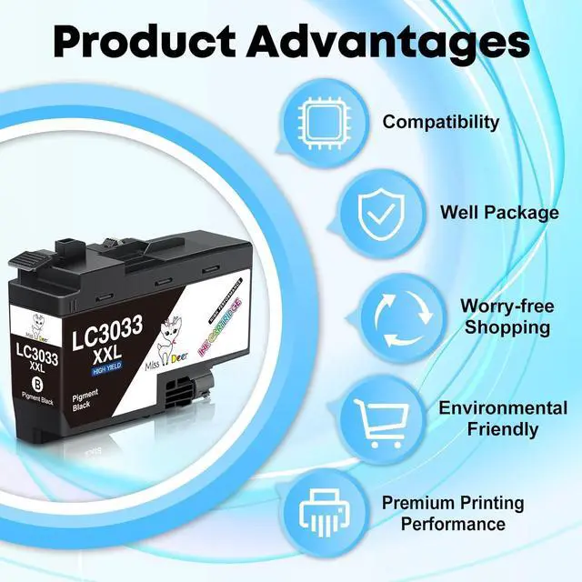 • High Page Yield: Up to 3,000 Pages per LC3033xxl black ink cartridge and 1,500 Pages per LC3033xxl c/m/y color ink cartridge (at 5% coverage of A4/Letter Paper).
