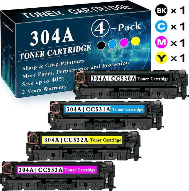 Package Contents : 1 X 304A | CC530A Black Toner Cartridge,1 X 304A | CC531A Cyan Toner Cartridge, 1 X 304A | CC532A Yellow Toner Cartridge,1 X 304A | CC533A Magenta Toner Cartridge , total 4 Packs