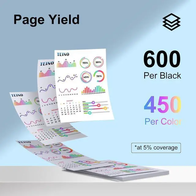 TEINO ink cartridges display ink level real-time, deliver crisp, clear images and text. An ideal choice for home, office, school users looking for professional quality printing