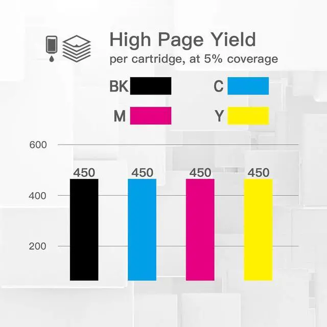 [Page Yield]: Up to 450 Pages per Black cartridge, 450 Pages per Color cartridge (at 5% coverage of A4 paper)
