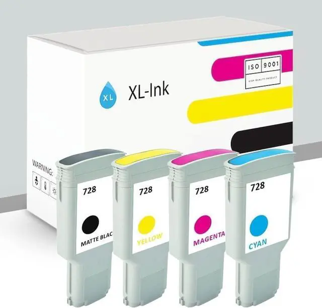 Premium compatible Ink Jets HP 728 (HP F9J68A, HP F9J67A, HP F9J66A, HP F9J65A) Capacity: 300ml: Matte Black,Cyna, Magenta, Yellow XL_InkJets High-quality ink cartridge can provide clear text and graphics, print the color effect you want on the paper.