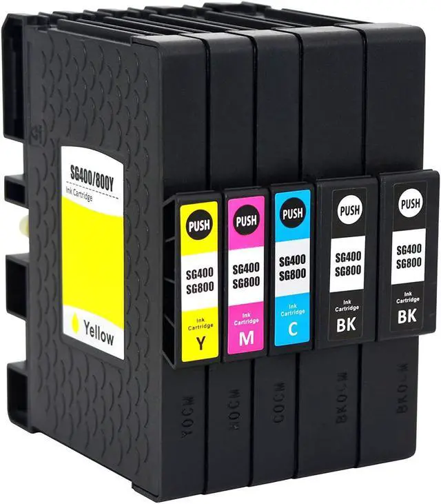High Capacity: 2x SG400 Black (60ml/cartridge), 1x SG400 Cyan / Magenta / Yellow (40ML/cartridge). (Total 5 Pack, New Compatible, NON-Original) *NOTE: NOT good for 100% cotton garment transfer.