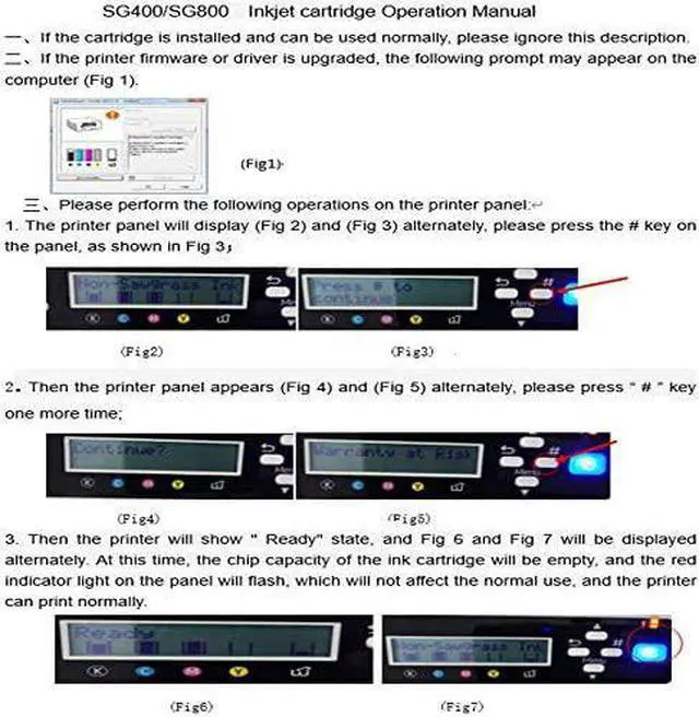 Tips: To avoid grid line happen, please use Photoshop or CorelDRAW application to print. DO NOT use original APP for printing. When the printer say "Non-Sawgrass Ink set ", and chip level shows "empty" after installing our compatible inks, please just Ignore that message and continue to print. More details, please refer to the Product Image.