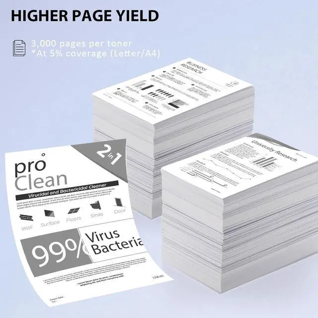 Color: Black;Yields up to 3,000 pages at 5% Coverage of letter/A4.(Actual toner yield varies with usage, graphics printed and environmental conditions.)