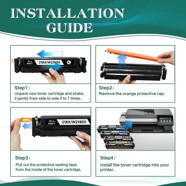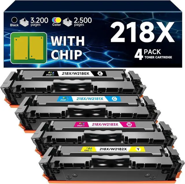 Package Contains : 218X Toner Cartridges for HP 218X Toner Cartridges 4 Pack Combo Set.Includes 1x 218X W2180X black toner, 1x 218X W2181X cyan toner, 1x 218X W2182X yellow toner, 1x 218X W2183X magenta toner (218X Toner Cartridges 4 Pack with Chip)