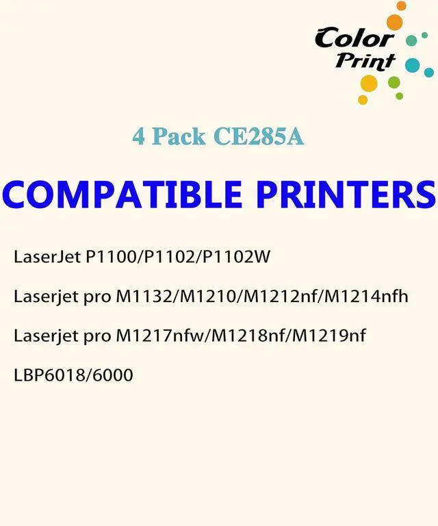 Package Contents: 4-Pack 85A CE285A Laser Printer Toner Cartridge