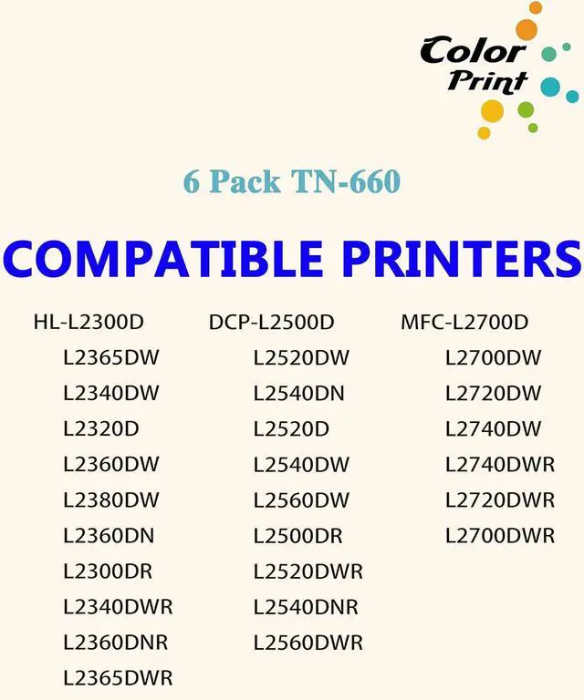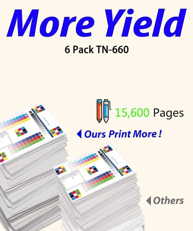 Package Contents: 6-Pack TN-660 TN660 Printer Toner Cartridge (Black)