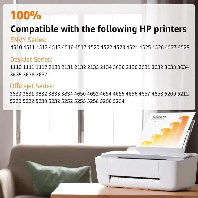 Compatible for HP Printers: DeskJet 1110 1112 2130 2131 2132 2133 2134 3630 3631 3632; ENVY 4520; OfficeJet 3830 3831 3832 3834 4650 4652 4654 4655
