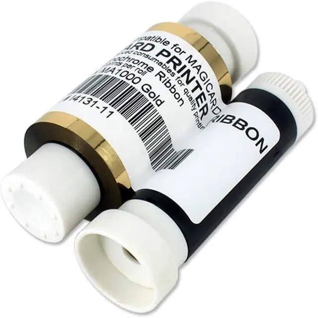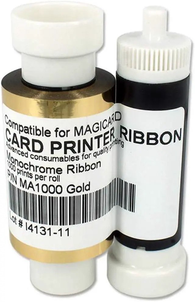 About monochrome ribbon: this compatible MA1000K-BlackGold monochrome ribbon is used to print images and barcodes on one side of a card. Monochrome ribbon cannot print variations of colors; it can only print one-color text and images. Monochrome ribbon reduces ribbon waste because it only uses the amount of ribbon that it needs.
