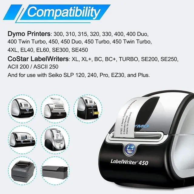 100% Compatible 1.Compatible for Dymo 300 310 315 320 330 400 400 Duo,400 Twin Turbo; 2.CoStar XL XL+ BC BC+ TURBO SE200 SE250 ACII 200 ASCII 250 ; 3.Zebra GK420T LP2824 LP2844 TLP2824 TLP2844 GX420D GX420T GX430T ,etc.