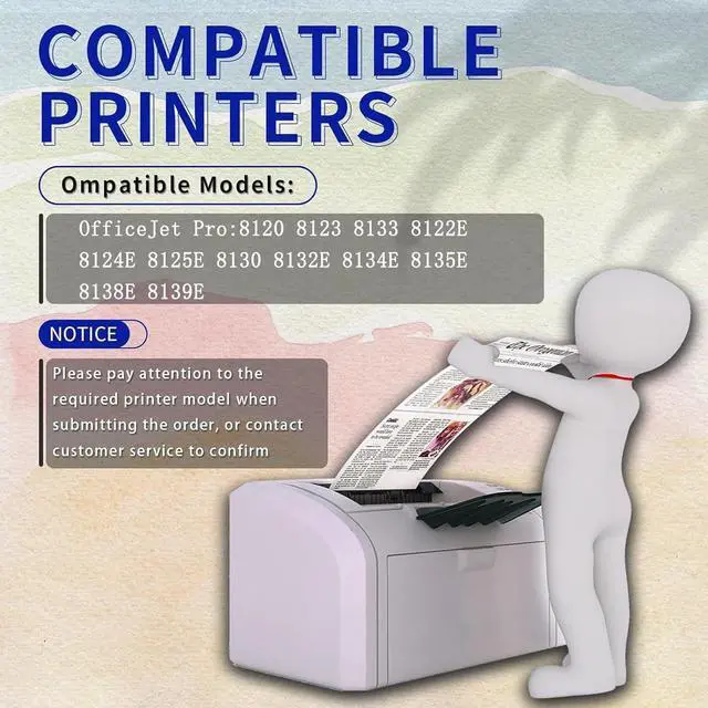 Be applicable:for HP 923e OfficeJet Pro 8120 8123 8133 8122E 8124E 8125E 8130 8132E 8134E 8135E 8138E 8139E printer