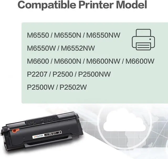 INKCLOUD PB-211 toner is designed to work perfectly with your Pantum laser printer: PANTUM P2200, P2500W, P2502W, M6500NW, M6550NW, M6552NW, M6600NW, M6602NW Series printers.
