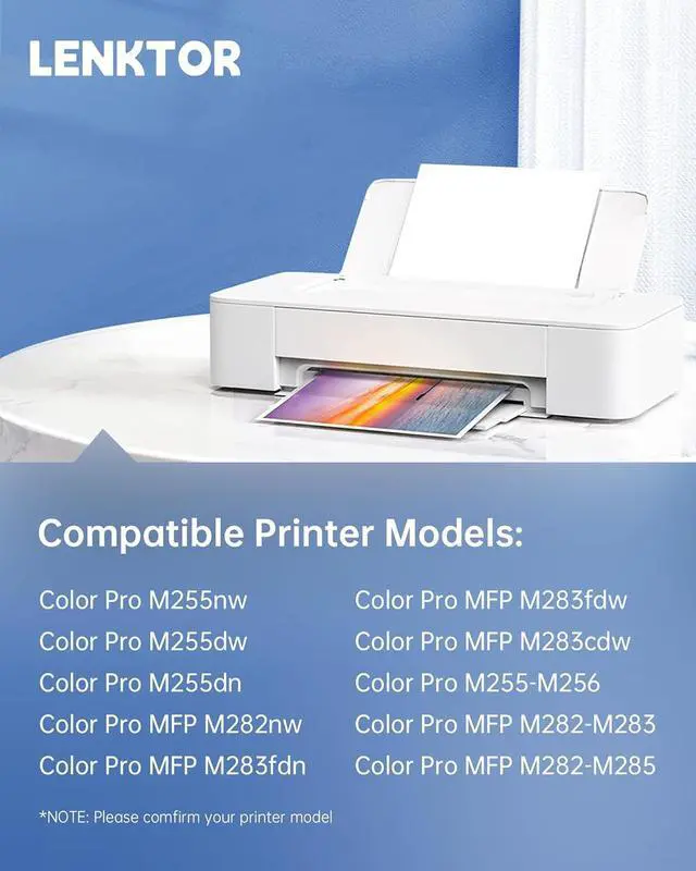 Printer Compatibility: Compatible for HP Color LaserJet Pro MFP M283fdw M283cdw M283fdn M282nw, Color Pro M255dw M255nw Toner laserjet Printer