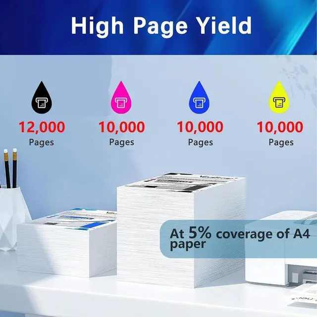 High YieldMore capacity for Kyocera TK-5152 toner cartridges:12,000 Pages per black TK5152K toner cartridge,10,000 Pages per cyan TK5152C toner cartridge,10,000 Pages per yellow TK5152Y toner cartridge,10,000 Pages per magenta TK5152M toner cartridge
