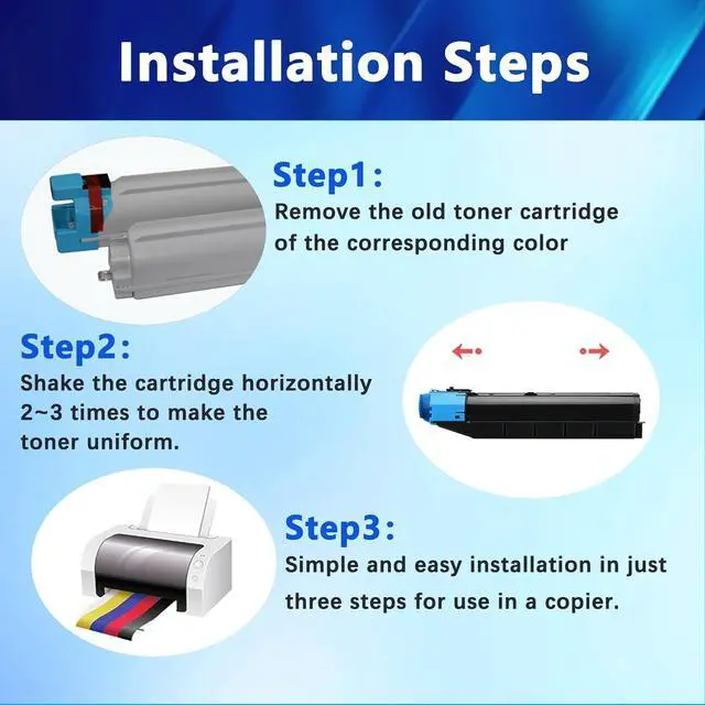 Premium QualityThe TK 5152 toner for Kyocera is fine and clear printing, high printing efficiency,simple installation process, easy to set up