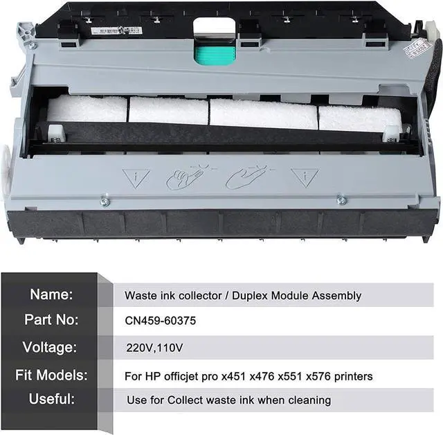 Model Name:Assy Duplexer / Waste ink CollectorCondition:100% NewPart Number :B5L09A CN598-67004 CN598-60375 CN459-60375Voltage:220V,110VUseful:Use for Collect waste ink when cleaning Next page of related Sponsored ProductsPage 11Page 1 Of 1SponsoredPrevious pageNext page Air Purifiers Filter Kitchen Accessories RV parts Pool Accessories Humidifier Filter Power Tool Accessories Appliances Accessories Vacuum Cleaner Accessories Auto Parts Hoist Accessories Technical DetailsAdditional Information Feedback Website (Online)Store (Offline) Kindly Note : Compatible with HP Officejet Pro X Series Printer : CN459-60375 Duplex Module Assembly