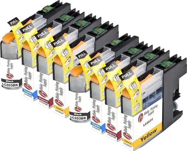 • INCLUDED: 2 Black LC203BK / LC201BK, 2 Cyan LC203C / LC201C, 2 Magenta LC203M / LC201M, 2 Yellow LC203Y / LC201Y inkjet cartridges.Compatible with part numbers Brother LC201, LC203