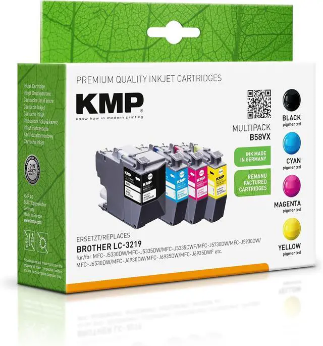 Combi replaces Brother LC-3219XL Black, Cyan, Magenta, Yellow 100% compatible ink cartridge for inkjet printers and multifunction devices. Quality ink "Made in Germany" for optimal printing. Print quality similar to the original and obvious saving potential. Whether ink cartridges, toners, coloured tapes, thermoplastic transfer tapes or paper, KMP compatible products offer the best quality, you will also convince you.