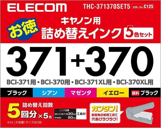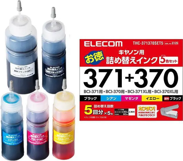 ELECOM Refill Ink for Cannon BCI-370 & 371 5 Color Set 5 Times Refillable THC-371370SET5 (Japan Import)