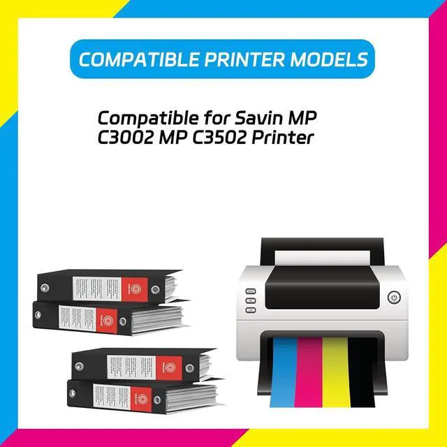 Compatibility Assurance: With meticulous attention to compatibility, our Toner Cartridges seamlessly integrate with a wide range of printer models, ensuring reliable performance across various devices. MP C3002 Toner Cartridges Compatible for Savin MP C3002 MP C3502 Printers.