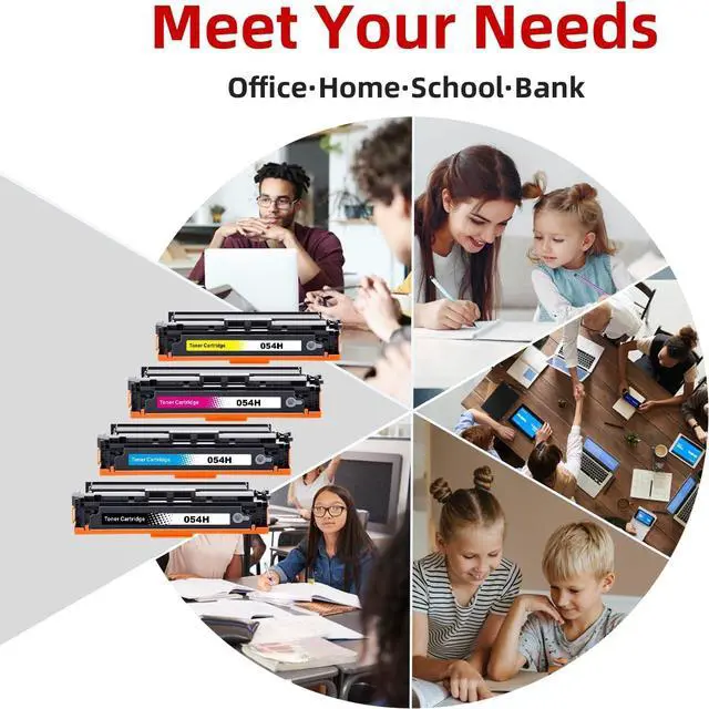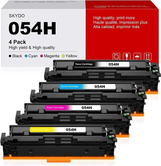 Package Contents: [total 4 Pack] cartridge 054h black toner, cartridge 054h cyan toner, cartridge 054h magenta toner, cartridge 054h yellow toner