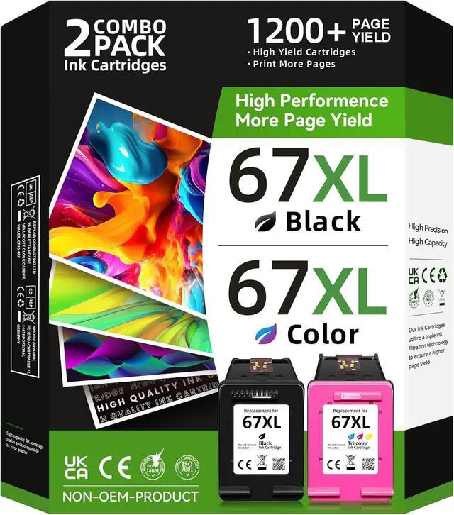 Wide Compatibility: compatible for HP 67xl ink cartridges black/color combo pack fit for ENVY 6000, 6000e, 6010, 6010e, 6020, 6020e, 6022, 6022e, 6030, 6030e, 6032, 6032e, 6034, 6034e, 6050e, 6052, 6052e, 6055, 6055e, 6058, 6065e, 6066e, 6075, 6075e Printer