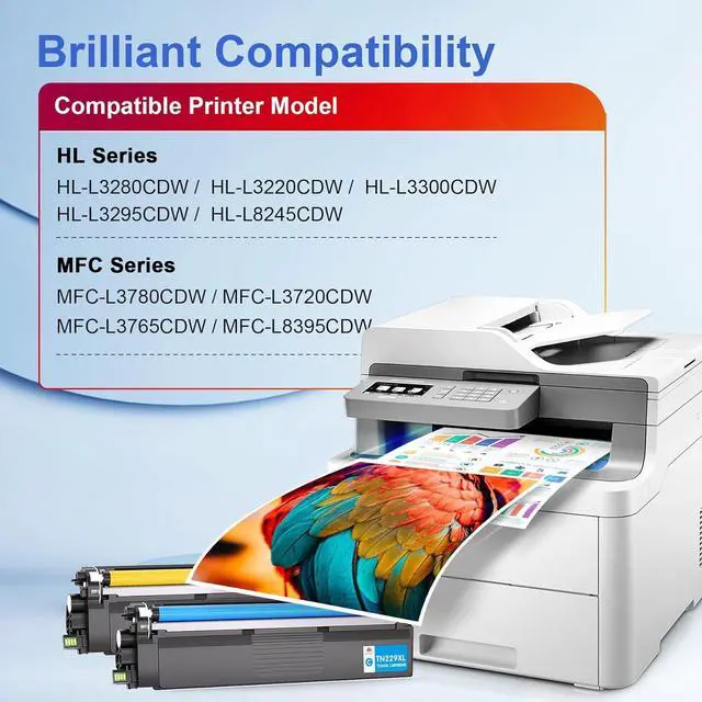 Broad Printer Compatibility: Our TN229XL Toner cartridges are designed for various printer models, including HL-L3220CDW, MFC-L3720CDW, HL-L3280CDW, MFC-L3765CDW, HL-L3295CDW, MFC-L3780CDW, HL-L3300CDW, MFC-L8395CDW, HL-L8245CDW, ensuring seamless compatibility and preventing printer damage caused by mismatched cartridges