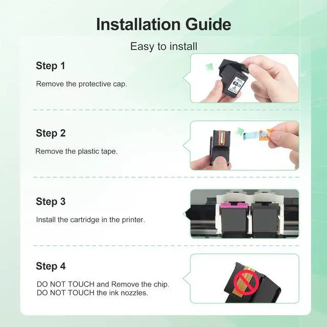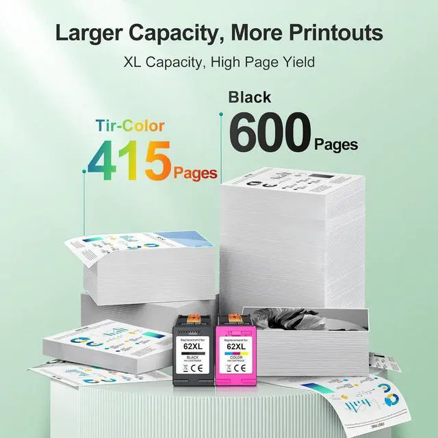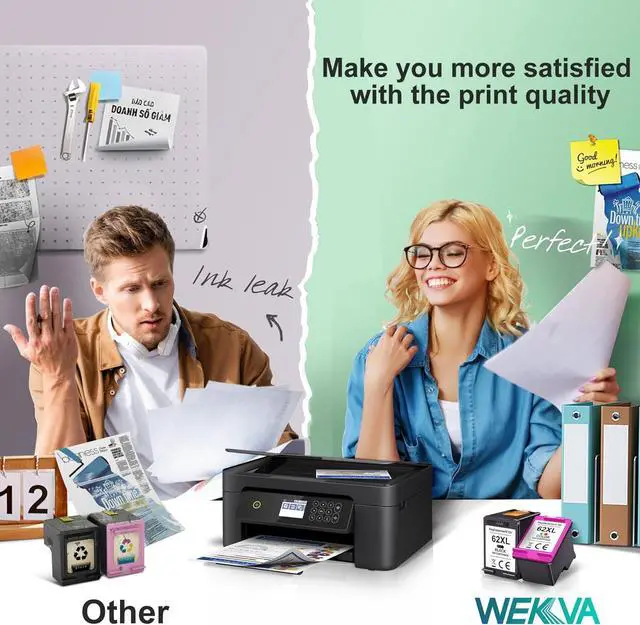 WEKVA ink for hp 62xl with the latest upgraded high accuracy chip, ensures perfect compatibility with your printer and perfectly avoid printer damage.