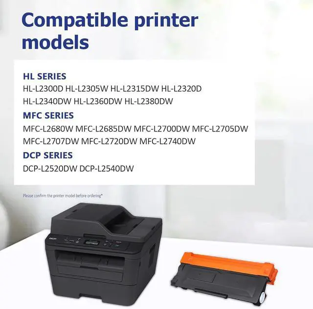 Compatibility Printer Models: HL-L2300D HL-L2305W HL-L2315DW HL-L2320D HL-L2340DW HL-L2360DW HL-L2380DW MFC-L2680W MFC-L2685DW MFC-L2700DW MFC-L2705DW MFC-L2707DW MFC-L2720DW MFC-L2740DW DCP-L2520DW DCP-L2540DW Printer Toner