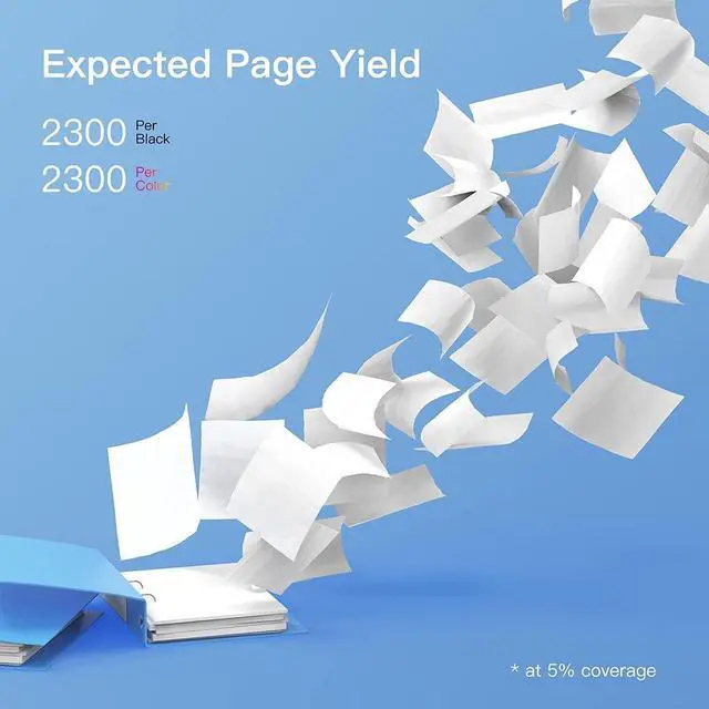 3. Print High Yield 2,300 Pages per 410A Black toner cartridge/ 2,300 Pages per 410A Color toner cartridge at 5% coverage, same page yield compare to genuine but with more affordable price, get four packs with budget price of genuine one pack