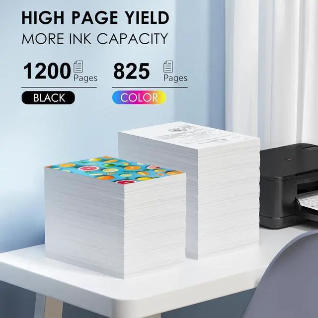 High Page Yield: for hp 910xl ink cartridges combo pack provide up to 1,200 pages for each 910XL Black ink cartridges825 pages for each 910XL color ink cartridge at 5% coverage (A4/letter)
