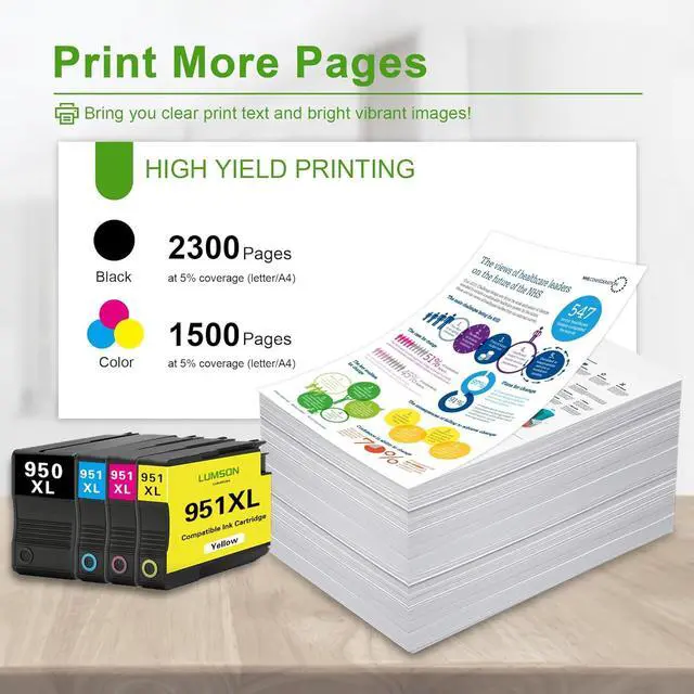 Outstanding performance and high quality: The 950XL 951XL ink cartridge ensures clear prints and delivers the desired color effect on paper, meeting all your office and home printing needs. Enjoy its reliable performance whenever you need it