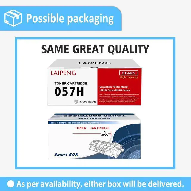 What You Will Get 2 packs compatible toner cartridge 057H with chipreplacement for Canon Cartridge 057, cartridge 057H, CRG-057, CRG-57H, CRG057, CRG057H, CRG 057, CRG 057H toner, black color. Page Yield High capacity 10000 pages at 5% coverage, A4 paper, letter. (ISO/IEC standard).
