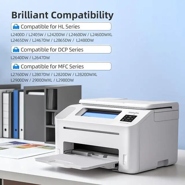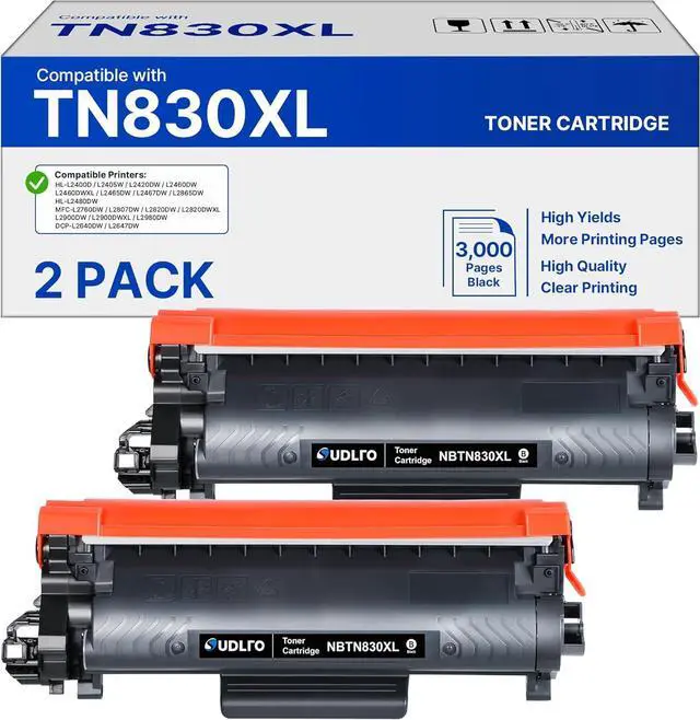 Printer CompatibilityTN 830XL for Brother TN830XL Toner Compatible for HL Series: L2400D L2405W L2420DW L2460DW L2460DWXL L2465DW L2467DW L2865DW L2480DW; DCP Series: L2640DW L2647DW; MFC Series: L2760DW L2807DW L2820DW L2820DWXL L2900DW 2900DWXL L2980DW Printer