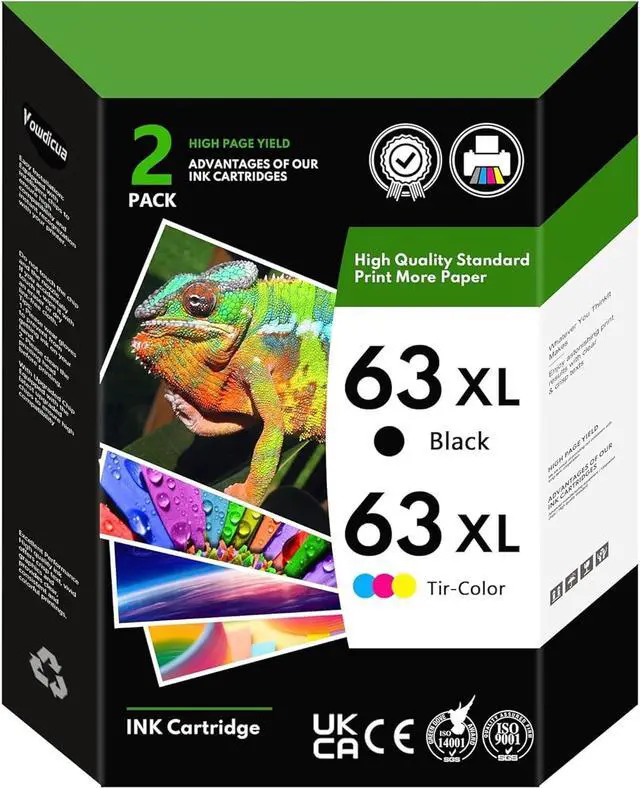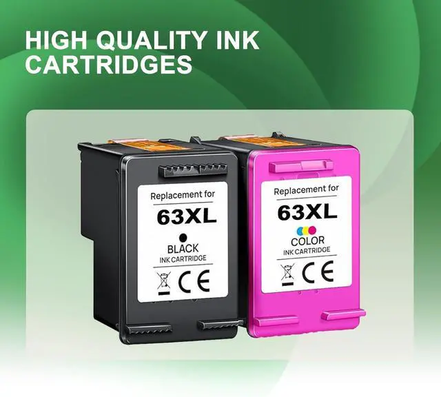 What you will get: 1× 63XL Black ink cartridge, 1 × 63XL color ink cartridge replacement for HP ink 63 XL (F6U64AN, F6U63AN)