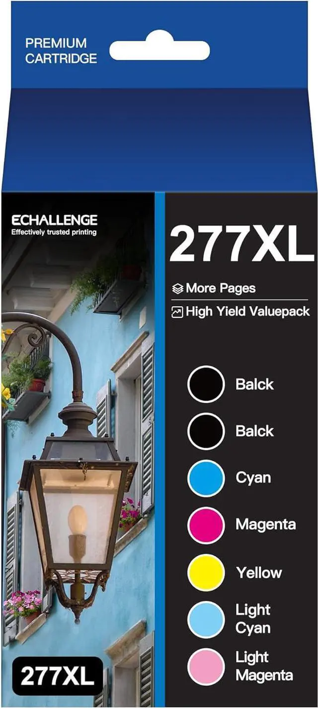 277XL ink Cartridges with latest chip (2 Black 1 Magenta 1 Cyan 1 Yellow 1 Light Cyan 1 Light Magenta,7 Pack)