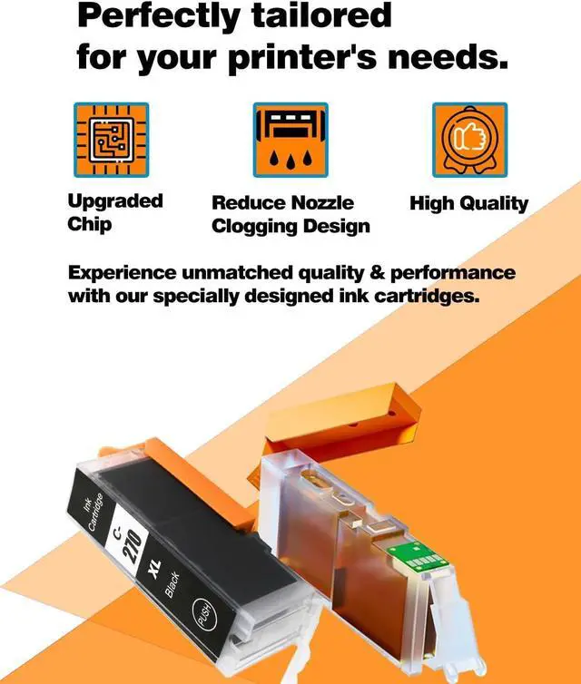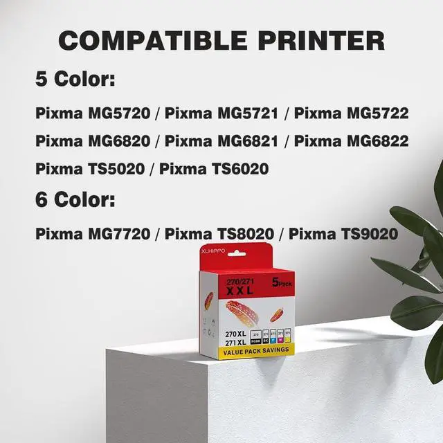 Package Contents: 1 x PGBK 270XL, 1 x Black 271XL, 1 x Cyan 271XL, 1 x Magenta 271XL, 1 x Yellow 271XL (Total 5 Pack). Each canon 270 271 ink cartridges is carefully packaged to ensure safe delivery and optimal performance Compatible Printers: 271 ink cartridges for PIXMA MG5720, MG5721, MG5722, MG6820, MG6821, MG6822, MG7720, TS5020, TS6020, TS8020, TS9020 Printer