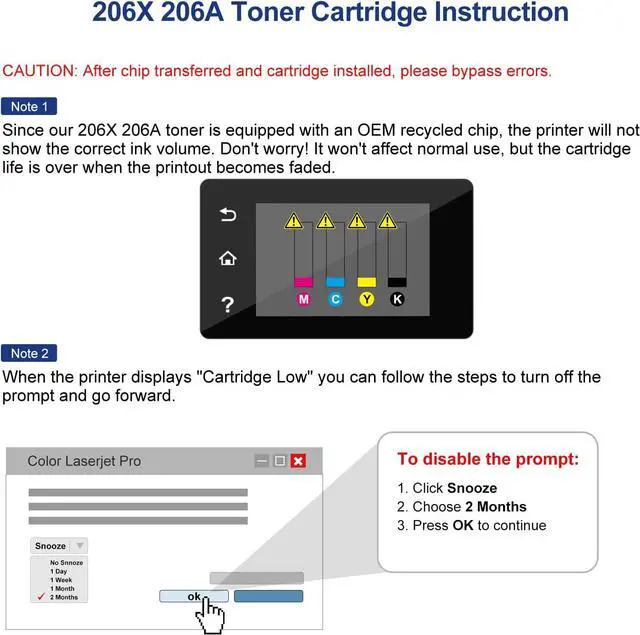With Chip: Each 206X Toner Cartridge comes with a pre-installed chip, No need to switch old chips on 206A 206X Toner Cartridges (The updated printer will be unable to recognize the chip)
