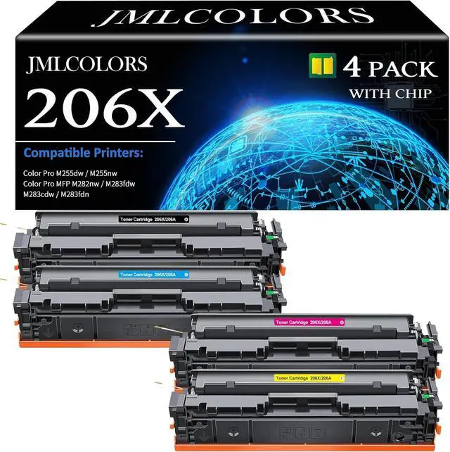 Package Contents: 4 Packs of 206X High Yield Toner Cartridges (1 x W2110X Black Toner, 1 x W2111X Cyan Toner, 1 x W2112X Yellow Toner, 1 x W2113X Magenta Toner)