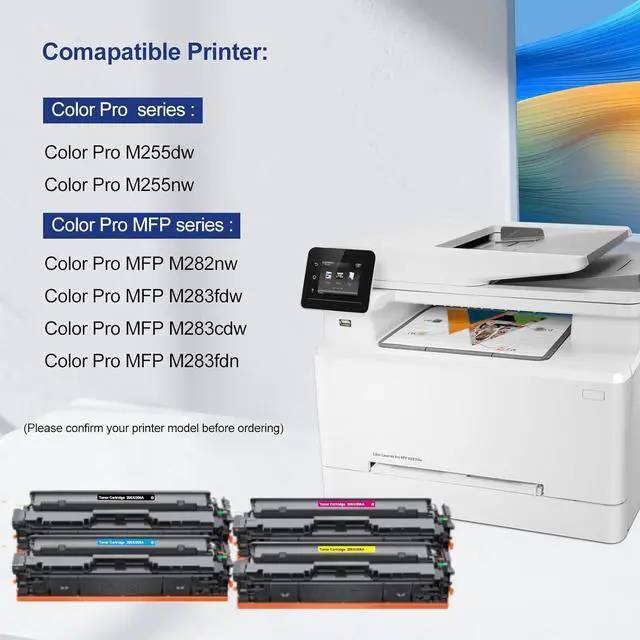 Compatible for HP Printer : Color Pro MFP M283fdw, Color Pro MFP M283cdw, Color Pro MFP M283fdn, Color Pro MFP M282nw, Color Pro M255dw, Color Pro M255nw Printer