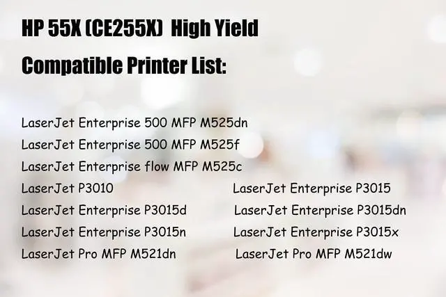 HP 55X (CE255X)High Yield Compatible Black Toner Cartridge Compatible Printer List: Removing the protective sealing tape Removing the cover Removing the orange pins Shaking the toner cartridge