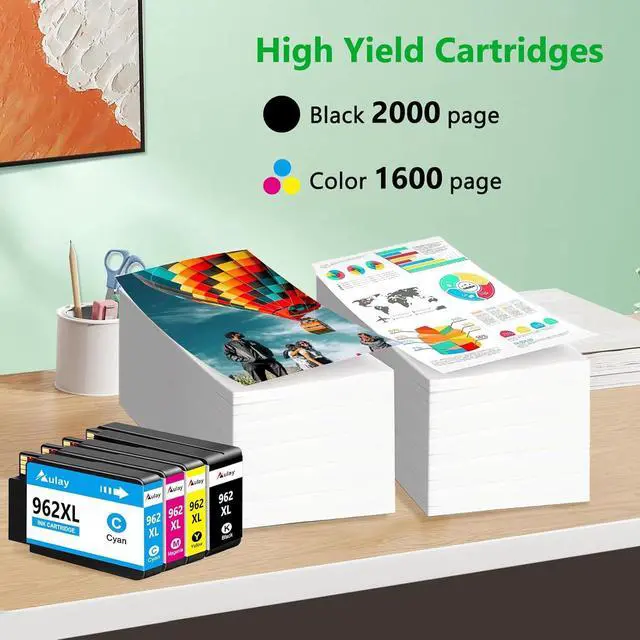 4.Page Yield: 2300 Pages per 962xl black ink cartridge, 1600 Pages per 962xl ink cartridges color combo pack (Letter/A4, at 5% coverage)
