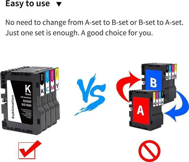 Aomya SG500 Sublimation Ink You Can Receive: 4-Pack SG500 universal version standard capacity cartridges.1 Black1 Cyan, 1 Magenta, 1 Yellow(32ml per packNote: Support the newest firmware