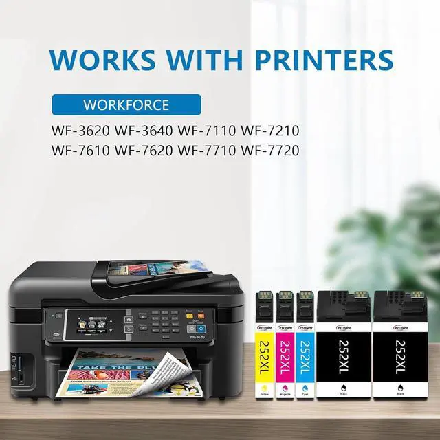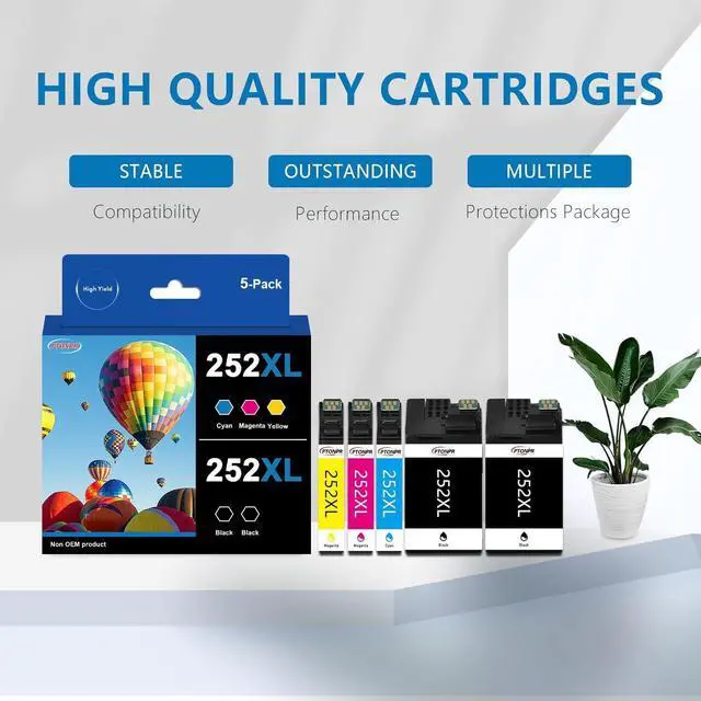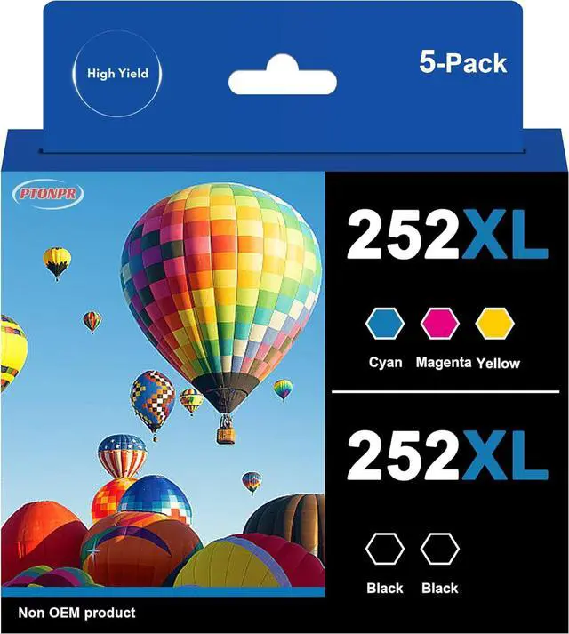 Package Content: 5 Pack 252XL Ink Cartridges Replacement for Epson 252XL Ink Cartridge Combo Pack (2 Black 1 Cyan 1 Magenta 1 Yellow).