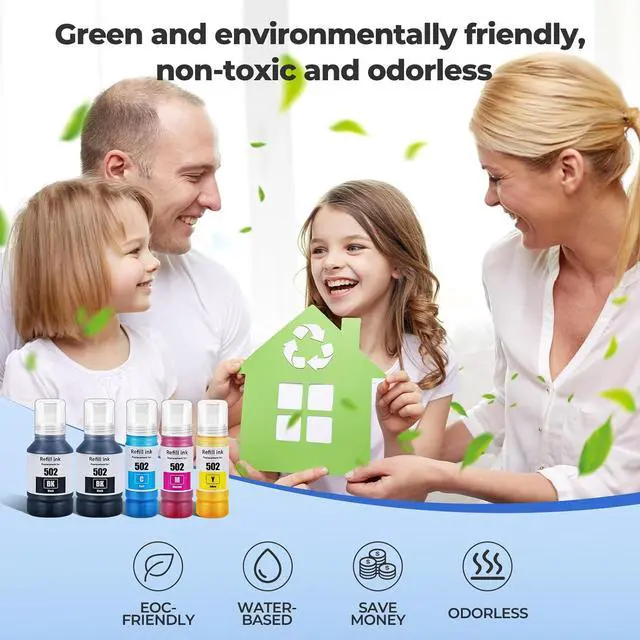 Compatible Printer: 502 ink refill bottles 5 Pack for ET 2850, ET 3850, ET 4850, ET 4760, ET 3760, ET 2760, ET 3830, ET 3843, ET 2750, ET 4750, ET 3750 printers, for 2850 ink, 3850 ink, 3843 ink, 4850 ink, 2760 ink, 3760 ink, 4760 ink, et-2760 ink, et-3760 ink, et-4760 ink, et-2850 ink, et-3850 ink, et-15000 ink, et-3830 ink, et-4850 ink, et-3843 ink, for et 3850 ink refill, et 2850 ink refill, et 4850 ink refill, et 2760 ink refill, et 3760 ink refill, et 4760 ink refill, et- 3830 ink refill, et-2850 ink refill bottles. Product Name: Trokliey 502 ink bottles replacement for 502 ink refill bottles use with ET-3700, ET-3710, ET-2700, ST-4000, ST-3000, ST-2000, ST-C2100, ST-C4100, et2850 et3830 et3843 et3850 et4850 et4760 et3760 et2760 et3710 et3700 et2750 et3750 et4750 et2700 et15000 Supertank Printer. [Not Sublimation Ink] Extra-large capacity, dramatically increases the number of pages printed: Up to 8300 Pages per T502 502 Black ink, 6800 Pages per T502 502 ink bottle Color combo pack, 5% coverage at A4 paper. Trokliey 502 refill ink bottles has auto-stop nozzle design - easy filling, no spills, drip-free, no need to squzze the ink bottles! Each bottle for is created to provide you with the CONFIDENCE & PEACE OF MIND that come from printing thousands of pages. If you have any problems, were always here to help. Sharp Text & Vibrant Color: These 502 ink bottles has high quality ink that allows you to print whatever you need, including documents, reports, letters, photos, graphics and much more.