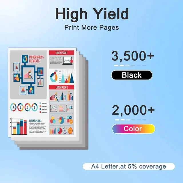 High Page Yield: up to 3,500 pages per LC3033BK black cartridges, up to 2,000 pages per LC3033XXL color cartridges (at 5% coverage)