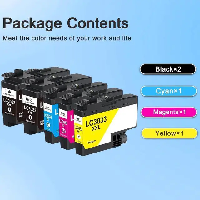 Sealed packaging: LC3033 XXL Super High Yield Ink Cartridge, 2 LC3033BK Black Ink Cartridge, 1 LC3033C Cyan Ink Cartridge, 1 LC3033M Magenta Ink Cartridge, 1 LC3033Y Yellow Ink Cartridge (5 packs in total)