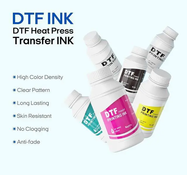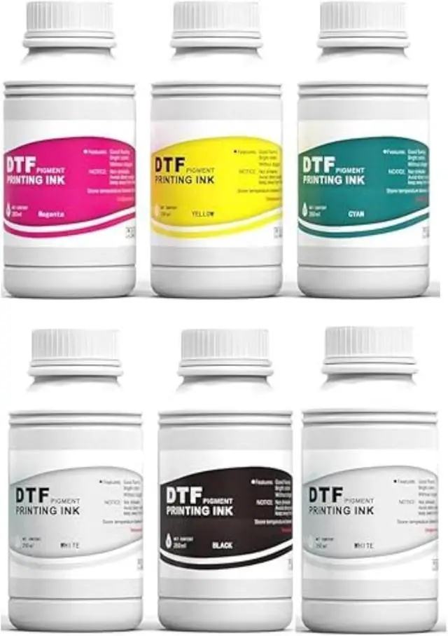 This ItemPUNEHOD DTF Ink 250ml for PET Film Heat Transfer Printing, DTF Ink Refill for DTF Printer L1800 DX5 DX7 XP600 I3200 TX800 Including CMYKWW6*250mlRecommendationsLCL Premium DTF Ink 600ML DTF Transfer Ink for PET Film, Refill for DTF Printers ET-8550, XP-15000, L1800, L805, R1390, R2400, Heat Transfer Printing Direct to Film (100ml x 6, CMYK 2Wh) LCL Premium DTF White Ink 1000ML-DTF Transfer-Ink for PET Film, Refill for ET-8550 XP-15000 L1800 L805 R1390 R2400, Heat Transfer Printing Direct to Film (1000ml x 1, White) CenDale Premium DTF Ink 600ML- DTF Transfer Ink for PET Film, Refill for DTF Printers Epson ET-8550, XP-15000, L1800, L805, R1390, R2400, Heat Transfer Printing Direct to Film (100ml x 6, CMYK Wh)