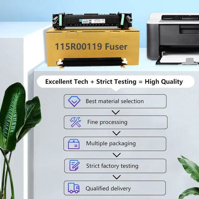 High quality: 115R00119 fuser is made of high-quality high-temperature-resistant raw materials, with firm fixing, perfect fit for continuous printing of 150,000 sheets of paper for a long time, PPC high-temperature-resistant raw materials can effectively protect the printer, strict production process, the product has passed ISO 9001 and 14001 certification and testing to ensure excellence.The performance is strictly repeated and tested to ensure long-lasting use.Bring your printer back to life