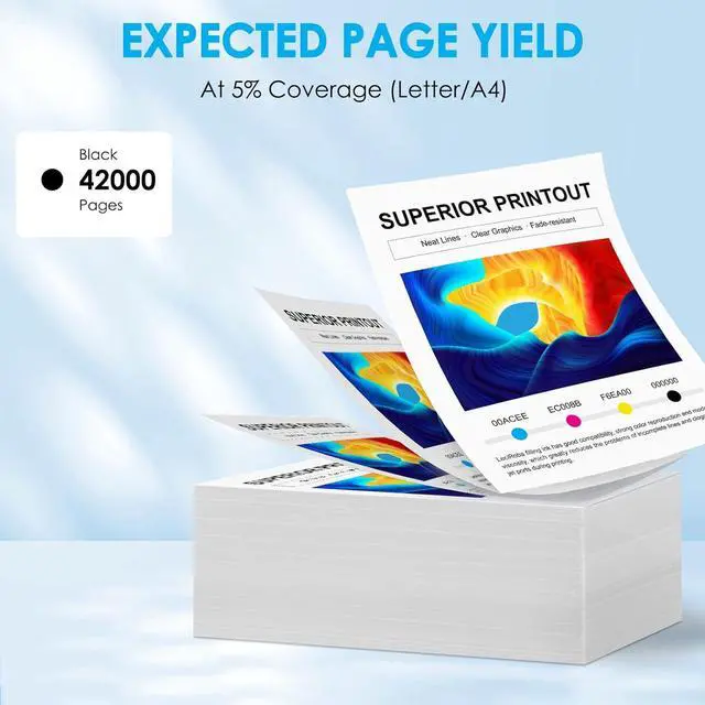 High Page Yield: 42,000 pages per cartridge, at 5 percent Coverage of A4 letter.